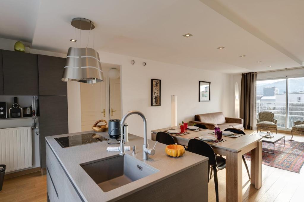 Comfortable Living Space: Le Kaliste in Annecy offers a holiday home with one bedroom, a bathroom, and a spacious living room. Guests enjoy free WiFi, a elevator, and free on-site private parking. Mod...