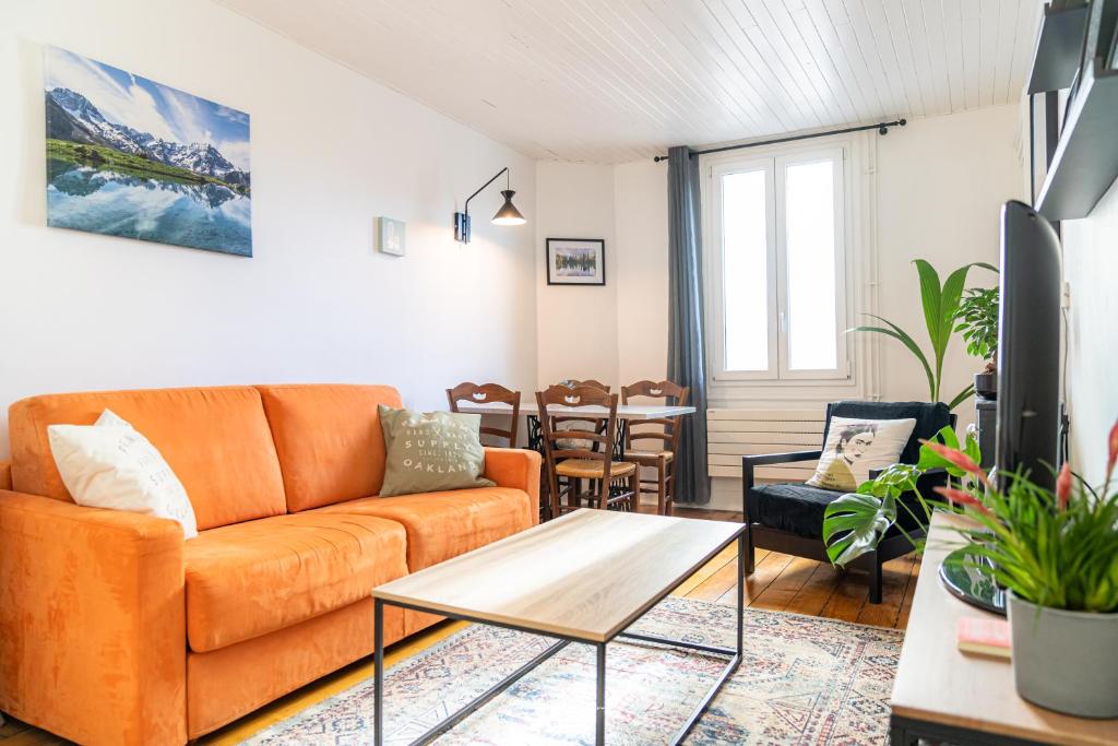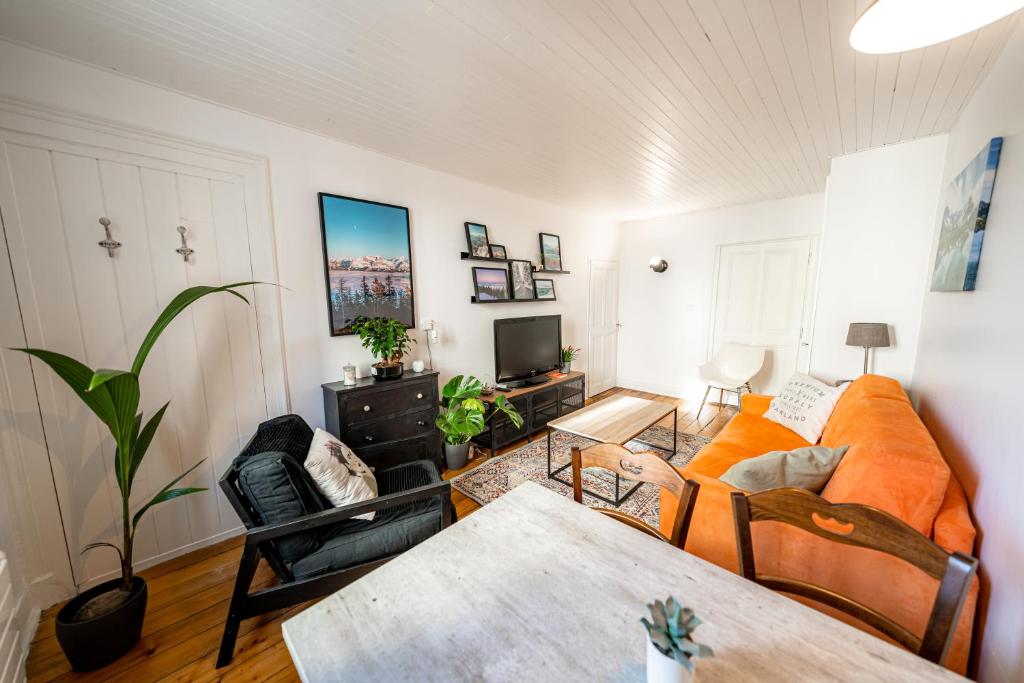 Modern Comforts: Les Échoppes in Annecy offers free WiFi, family rooms, and a balcony with city views. The apartment includes a washing machine, kitchen with coffee machine, and a dining area. Conveni...