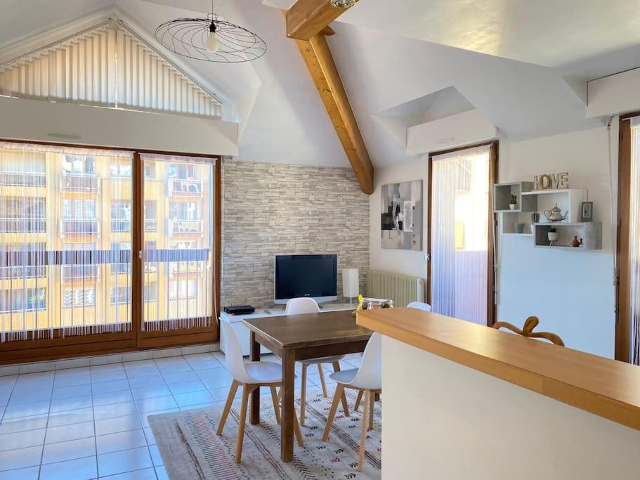 Central Annecy Location: L’Orme • Duplex central au bord du canal is located in Annecy city center, offering easy access to key attractions. Chambéry-Savoie Airport is 26 mi away, while Rochexpo lies ...